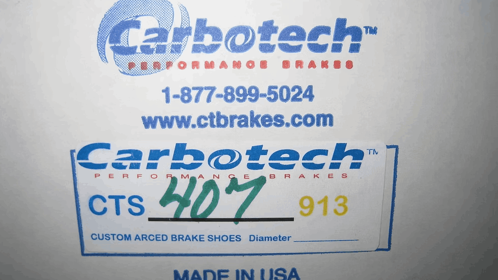 This listing is for one NEW set of rear brake shoes for a Legends Race Car, Thunder Roadster which uses a Toyota Celica rear housing drum brake set up. These brake shoes may work in other applications where that type drum brake housing is used but it is the buyer’s responsibility to check that before bidding. This is the Carbotech 913 “special” series.