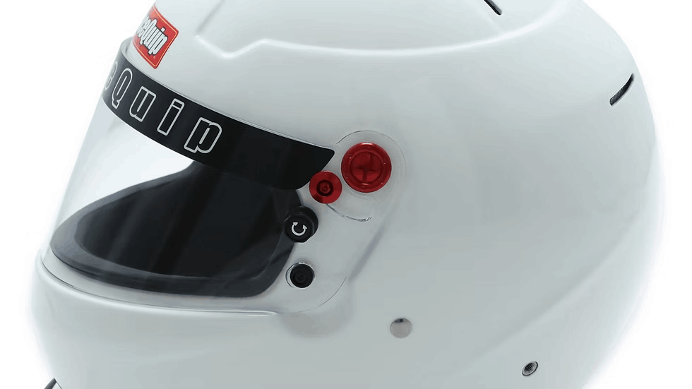 The RaceQuip PRO20 is a Snell SA2020 rated full face auto racing helmet that incorporates contemporary styling with modern production techniques. The shell is built using pre-preg composite materials placed into pressurized steel molds to achieve the best combination of light weight and strength. Reinforced M6 threaded HANS/HNR inserts are mated to the shell along with an expanded polystyrene (EPS) liner. HANS or other Head and Neck Restraint device anchor posts (not included) can be easily attached to the outside of the helmet using the installed M6 threaded inserts. The distortion free 3mm polycarbonate faceshield features a red anodized aluminum pivot kit, hand ratcheting TearOff posts, and a silicone eyeport gasket to seal out dust and dirt. A wide eyeport provides good peripheral vision and allows the use of personal eyewear. The Snell SA rating means that the interior, paint, and kevlar chin strap are all fire retardant so the RaceQuip PRO20 Helmet is suitable for use in all forms of motorsports. The comfort fit blended Nomex® interior along with exhaust vents on the top and back of the shell help keep your scalp cool. All these features are wrapped in a stylish aero design FRP composite shell with a medium sized chin spoiler.